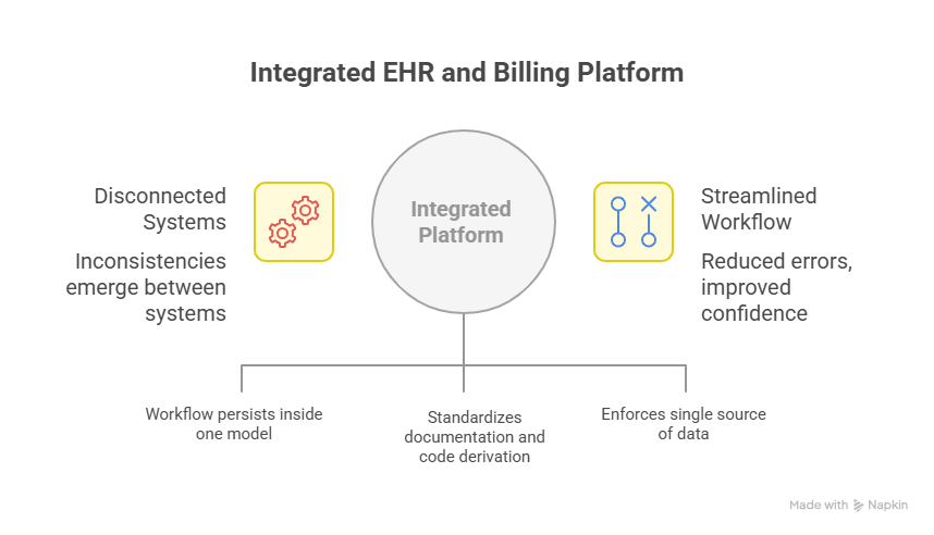 For administrators and clinical leaders, the value case goes beyond speed. Integration becomes a governance mechanism. It standardizes how encounters are documented, how codes are derived from documentation, how payer rules are validated, and how exceptions are surfaced. It also simplifies auditability: one record of what happened, who did it, when it moved forward, and why it required follow-up. In an environment where staffing is tight and payer requirements are dynamic, the capability to control the process—not merely connect it—determines financial predictability and staff sustainability.