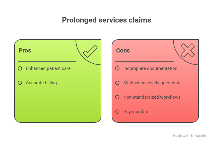 - Payer audits: Because of their complexity, prolonged services are a frequent audit target. Without airtight documentation, practices risk clawbacks and compliance concerns.